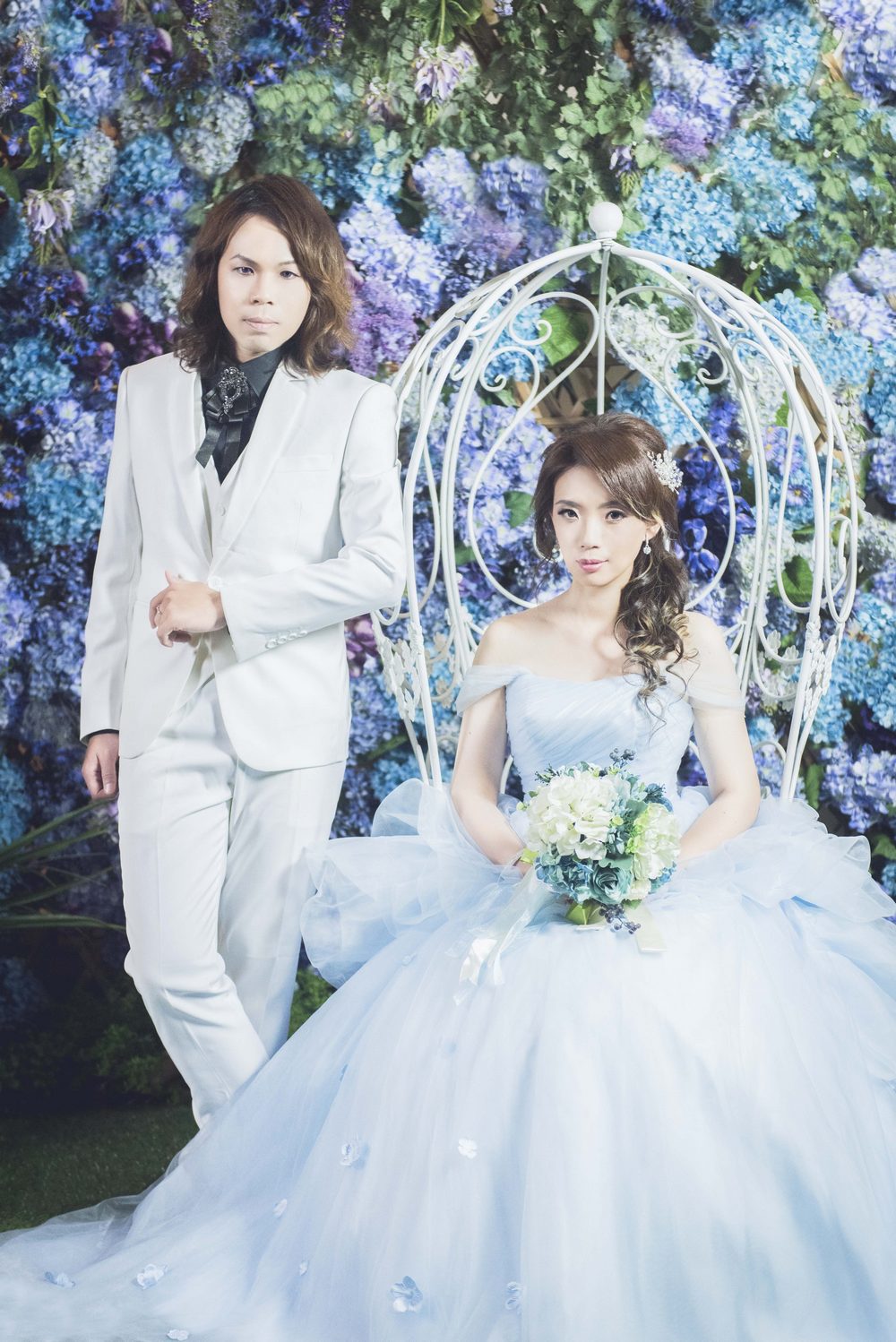 新郎的西裝與配件,淘寶也能一次滿足。尤其是想挑戰平常不穿的顏色,又想要合身,依照上面的尺寸應該都準,不知道的話可以線上問客服。唯一需要修改的是褲長,不過拍婚紗只穿一下子,所以我們偷懶用別針折起來。