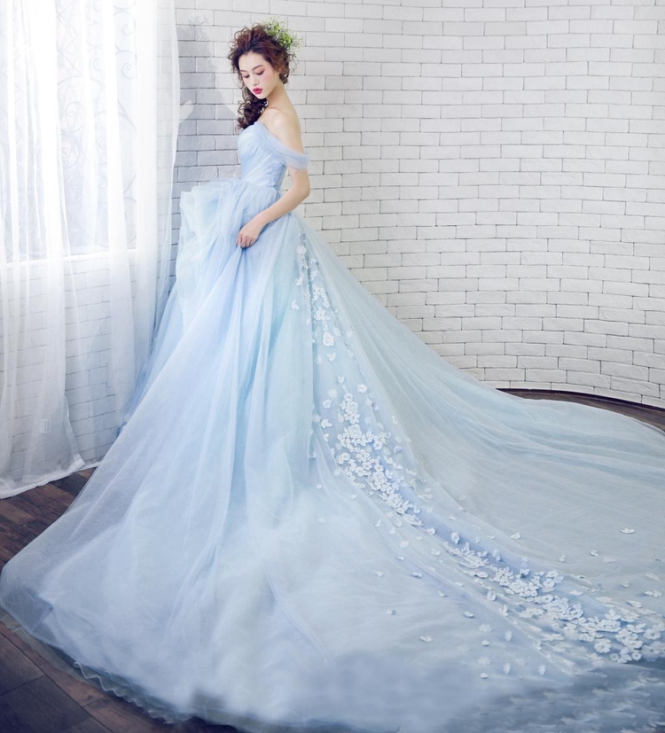一開始想找素雅的水藍色婚紗就看上這件,本來覺得太便宜還有點擔心質量,沒想到媽媽最喜歡的就是它。可能因為沒有什麼鑽或蕾絲,所以不貴,但穿起來很柔軟舒服還超級澎,最後只在攝影棚穿了20分鐘拍完就收起來了。